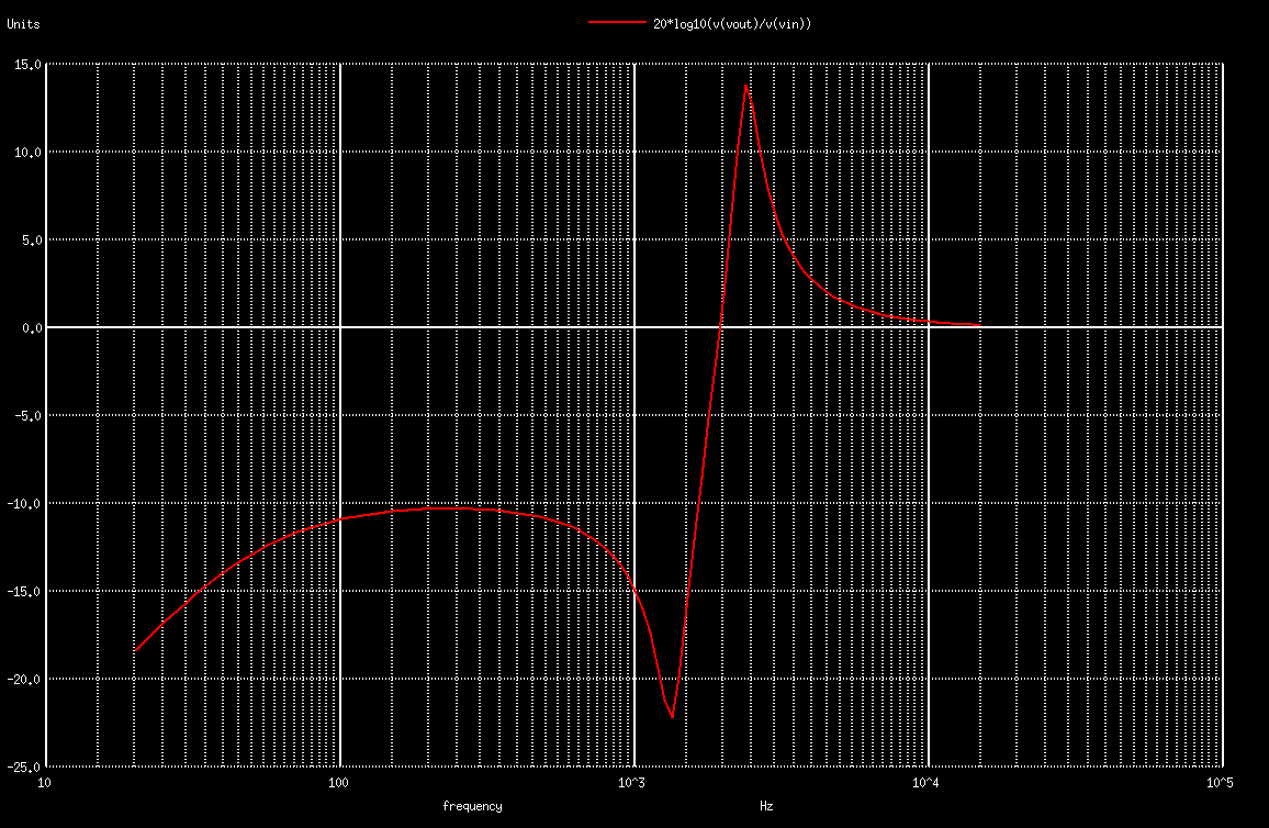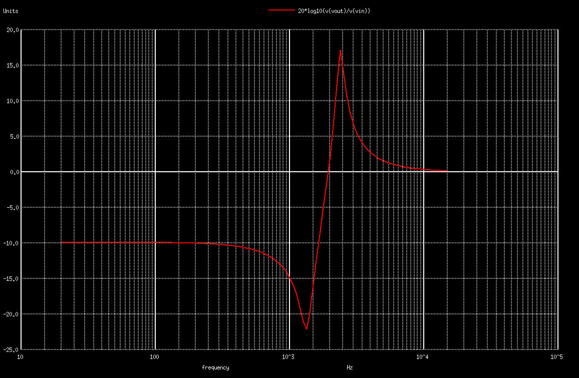 We can observe gain spikes in resonance frequencies. This is characteristic for 2nd order circuits. Depending on the load however, the spikes can dissapear.